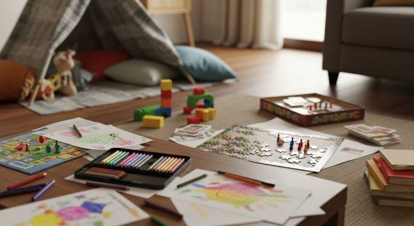 Au bout de quelques jours, la fatigue du “toujours les mêmes jeux” se fait sentir ? Lancez des mini-challenges : qui sera le plus rapide à trouver 4 objets rouges ? Construire une tour la plus haute possible avec les coussins ? Réaliser un puzzle en coopératif sans parler ? Ou encore, transformer un objet du quotidien en jouet détourné (casserole tambour, cartons-tunnel, chaussette-masque…). Les défis, partagés sous forme de liste ou de cartes à piocher, relancent l’énergie collective.